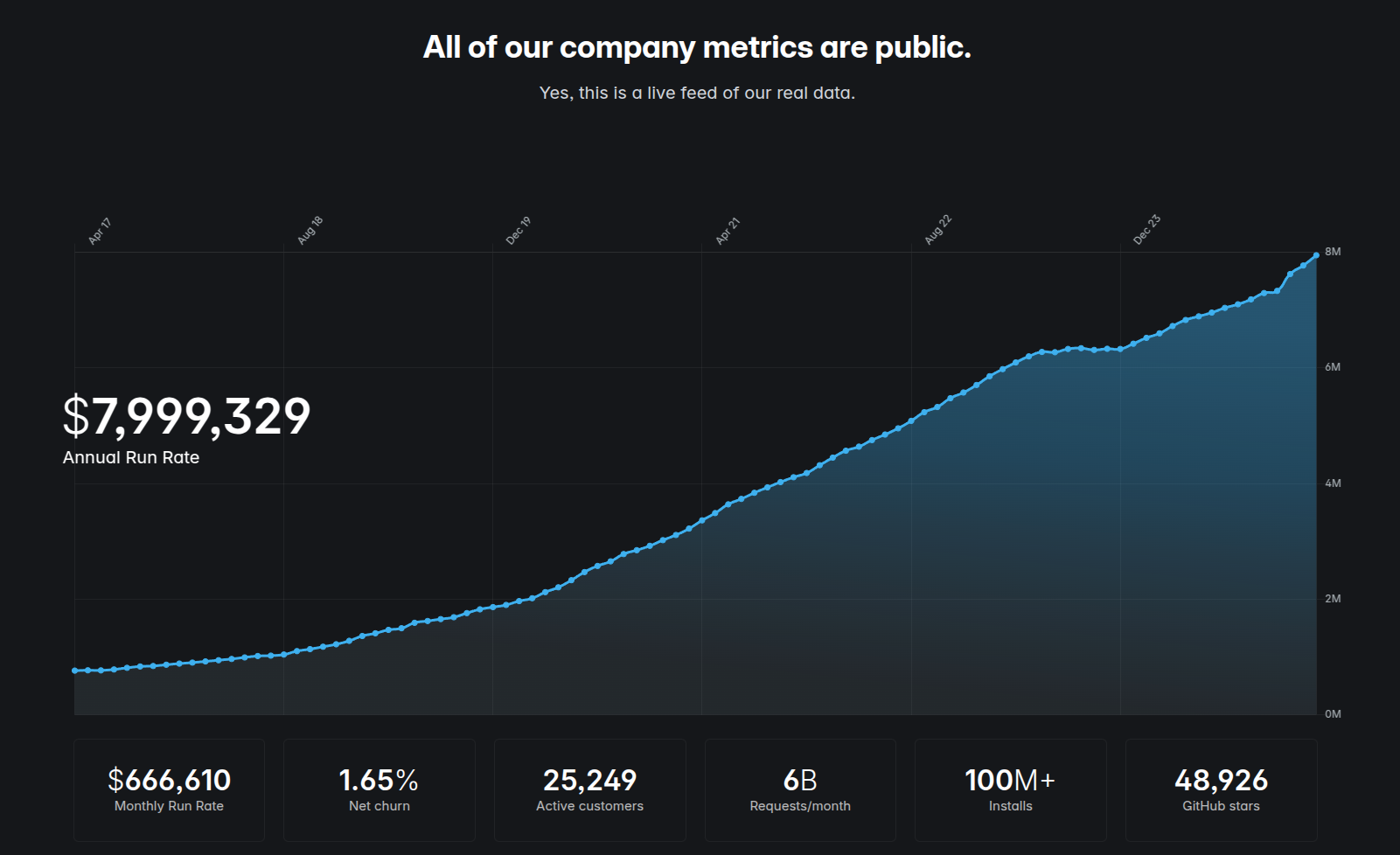 As a bonus, they publish all their metrics, including profits and customers, in real time.